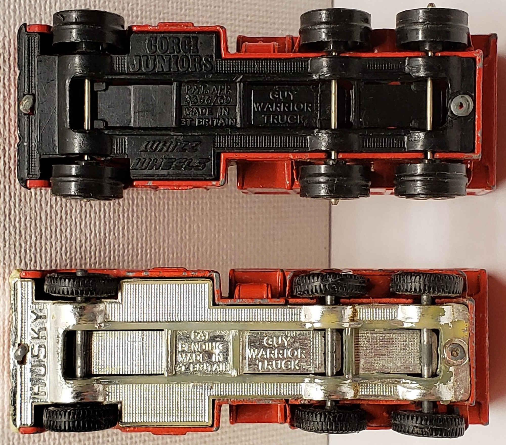 Baseplate Comparison: Corgi Juniors #13a (top)/ Husky #63 (bottom)