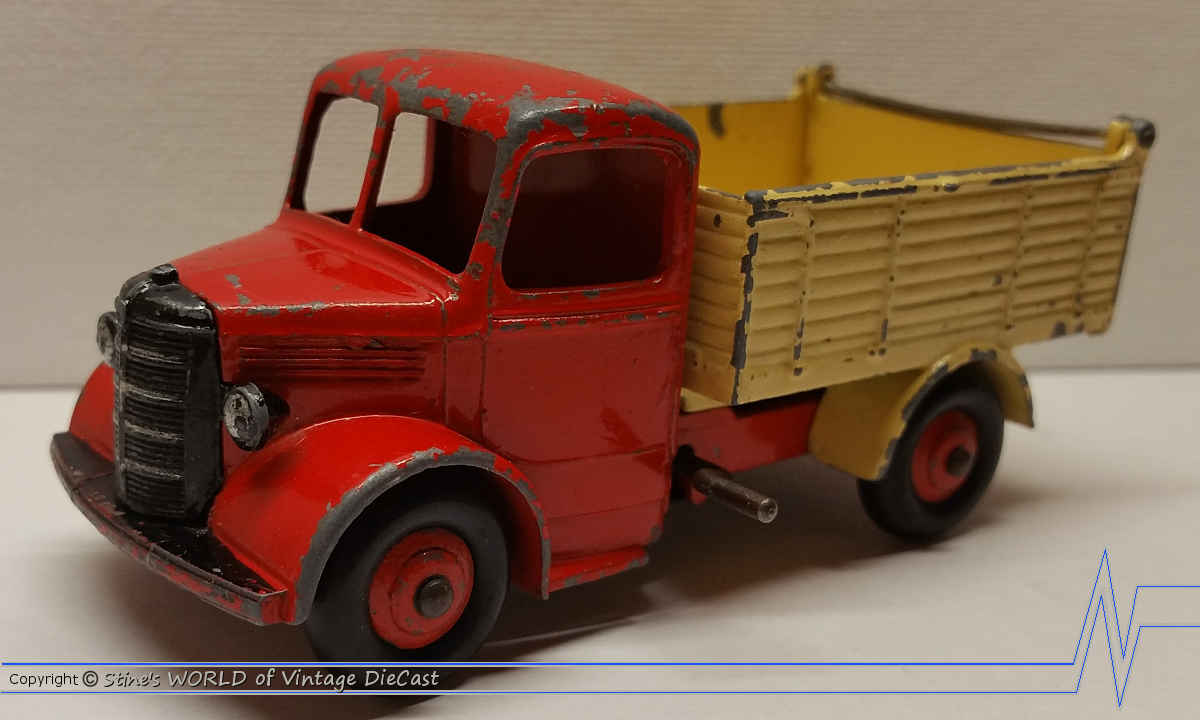 Dinky #25m - Red Cab with Yellow Tipper & Red Hubs with Small Print on Baseplate