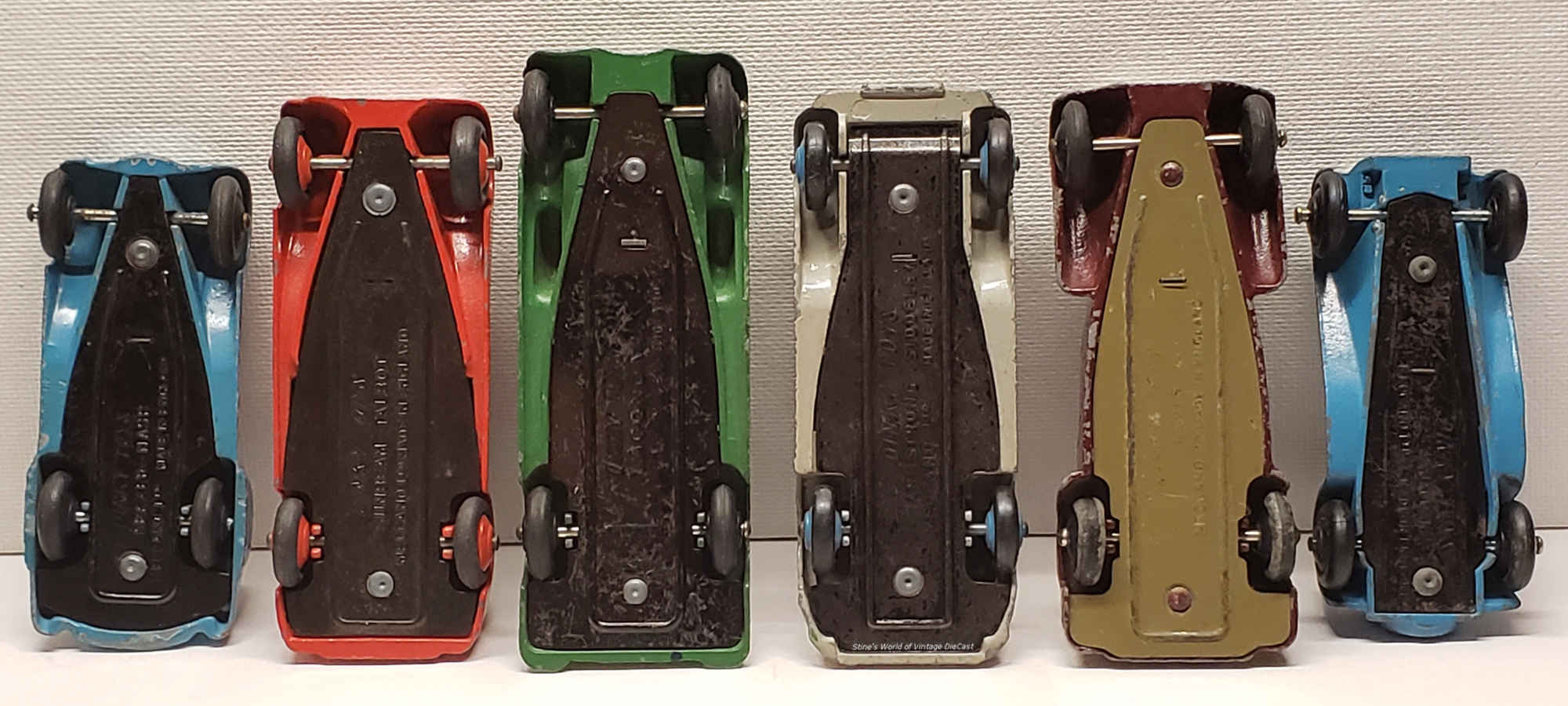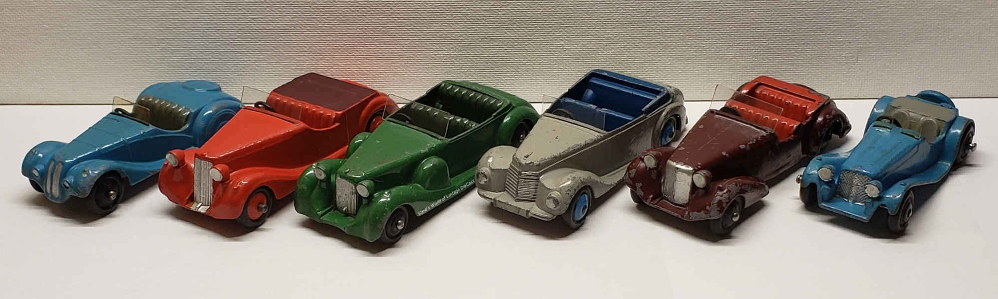 Dinky #38 Sports Series (from left to right) - 38a-Frazer Nash/ 38b-Sunbeam Talbot/ 38c-Lagonda/ 38d-Alvis/ 38e-Armstrong Siddeley/ 38f-Jaguar SS100
