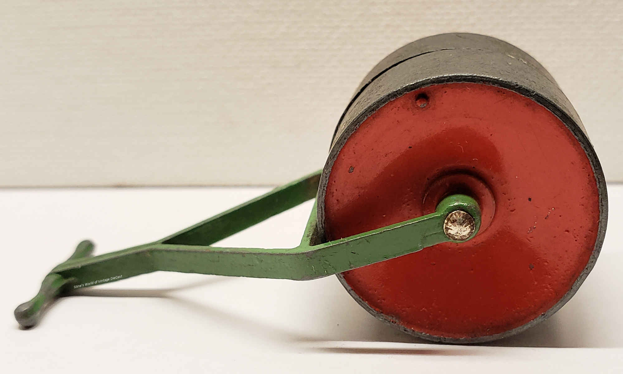 The Dinky #105a Garden Roller was introduced in 1948 and subsequently renumbered to 381 in 1954. Both sides of the roller wheel was coloured red and the handle was green.