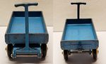 The Dinky #105c 4-Wheeled Hand Truck was introduced in 1948 and subsequently renumbered to 383 in 1954. The early versions were solid blue and later versions were mainly green with yellow handles.