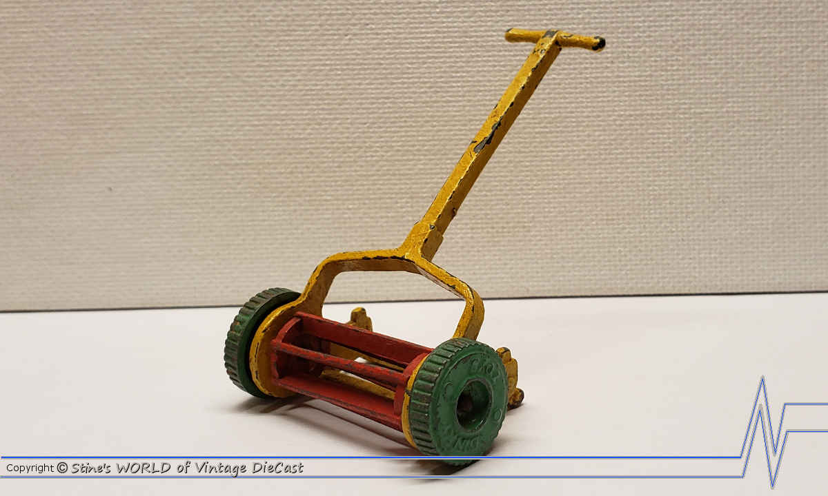 The Dinky #105e Grass Mower was also referred as a grass cutter. It was introduced in 1948 and subsequently renumbered to 384 in 1954. The mower was mainly made with green wheels, red or green blades and yellow handle.