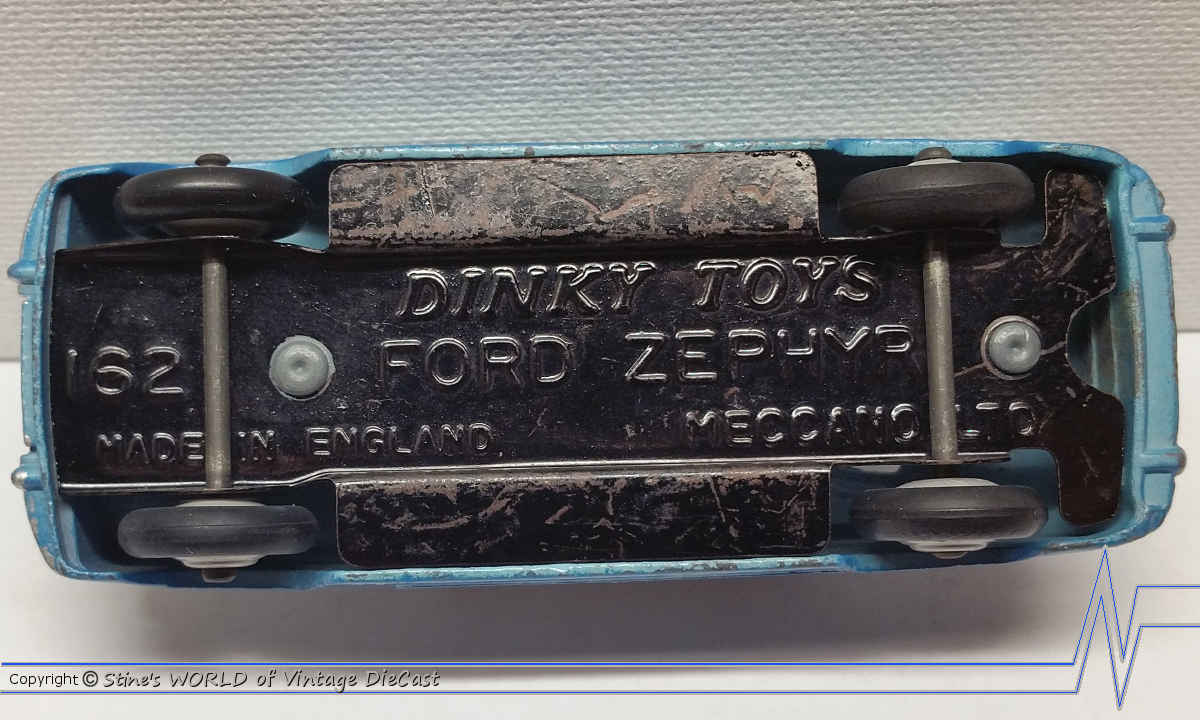 The model 162 was introduced as the Ford Zephyr in 1956. The Zephyr was a two-tone body colour car and came in cream with green sides or blue on blue.