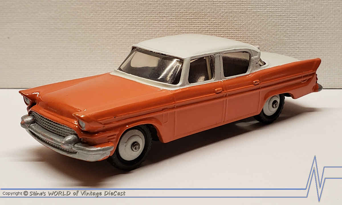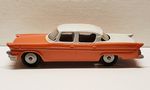 The Packard Clipper was introduced in 1958. This model came in two different two-tone colour schemes - cream body with red roof/trunk or orange body with cream roof/ truck. Both versions included ridged hubs and plastic windshields.