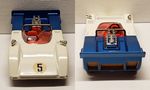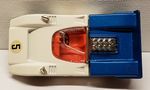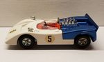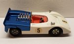 The McLaren M8A was introduced in 1970 in either a white/blue body colour or solid green. Earlier versions used cast wheels and then replaced with plastic speedwheels. The rear hood could lift revealing the engine.