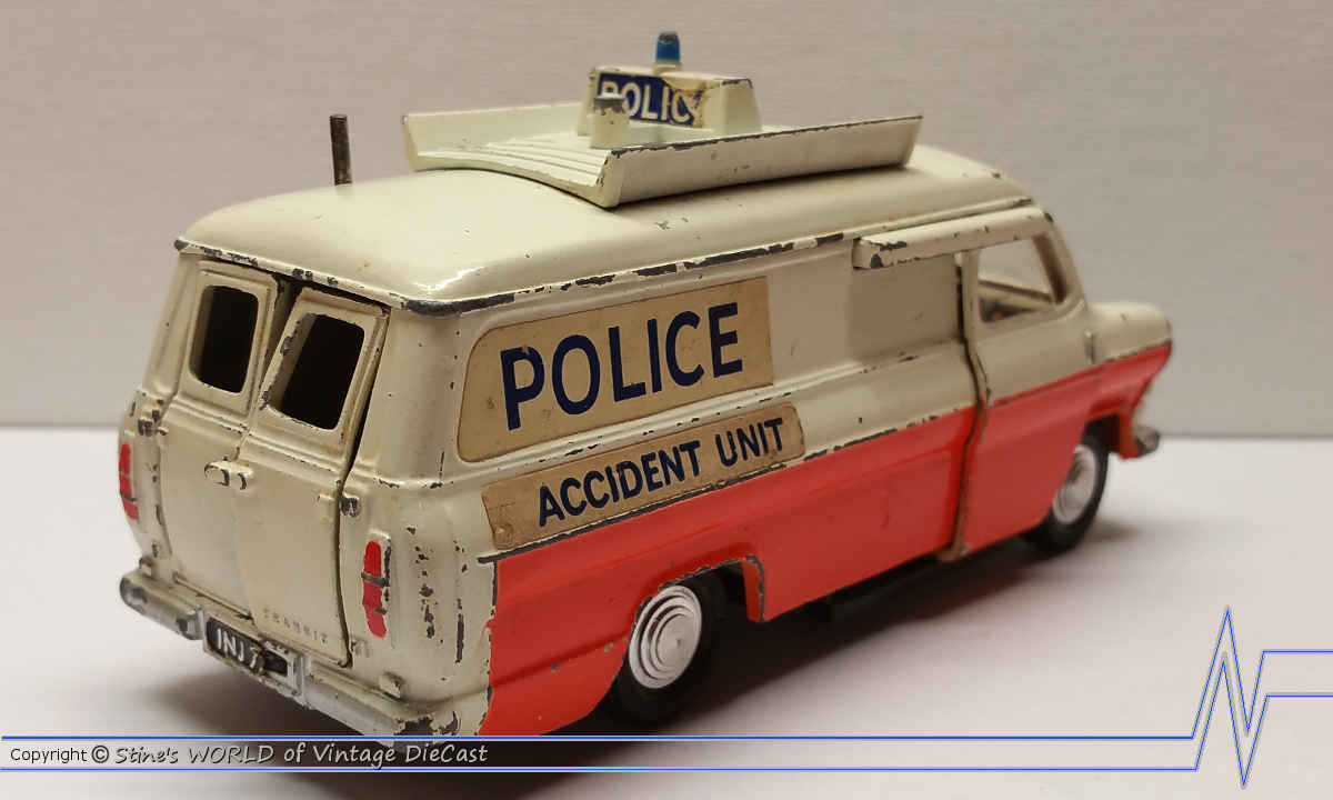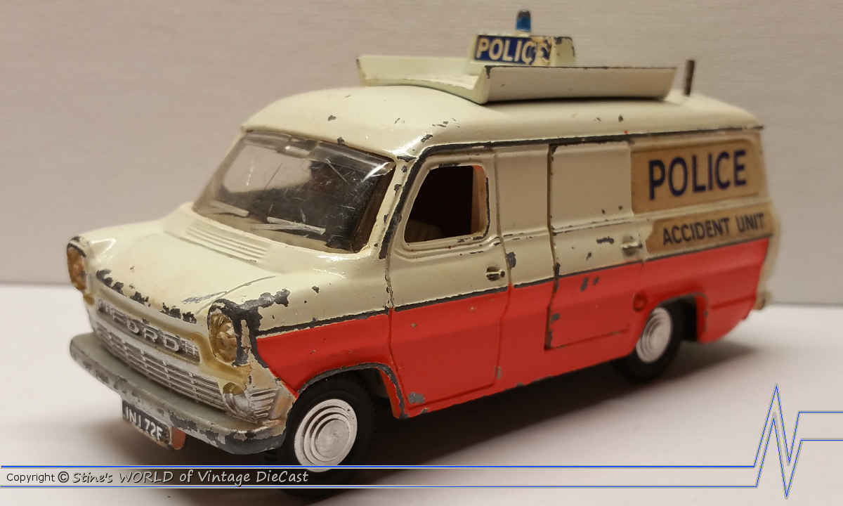 The Ford Transit Van was introduced in 1967 as a “Police Accident Unit” vehicle in a white and orange body coulour. The side and rear doors were allowed to open.