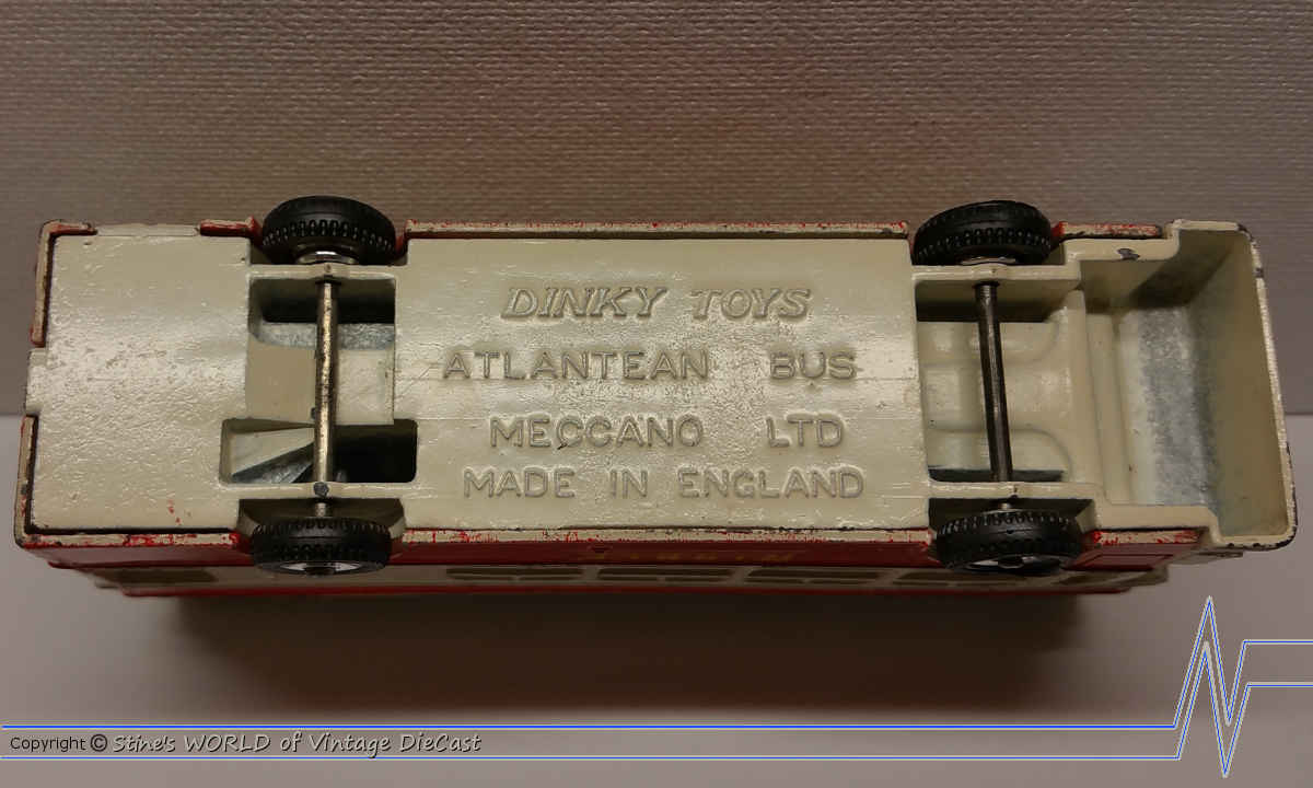 The Atlantean Bus was issued in 1963 and was available in two-tone red with off-white and two different sets of decals.