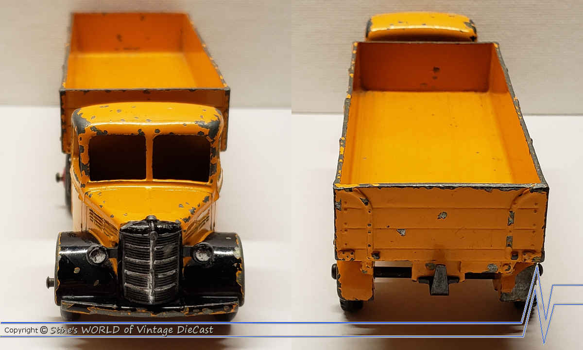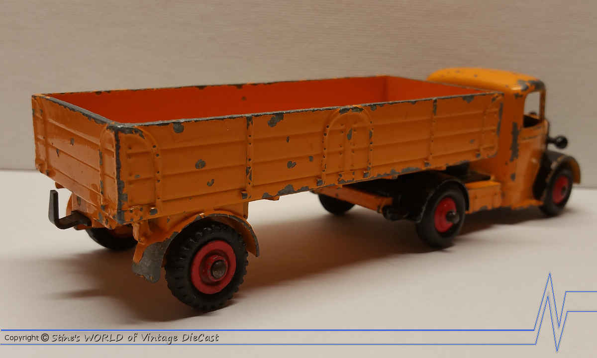 The Bedford Articulated Lorry was introduced in 1948 and subsequently renumbered to 921 and eventually to 406 in 1955. This model was available in yellow or red cab/wagon colours. Later versions included windows.