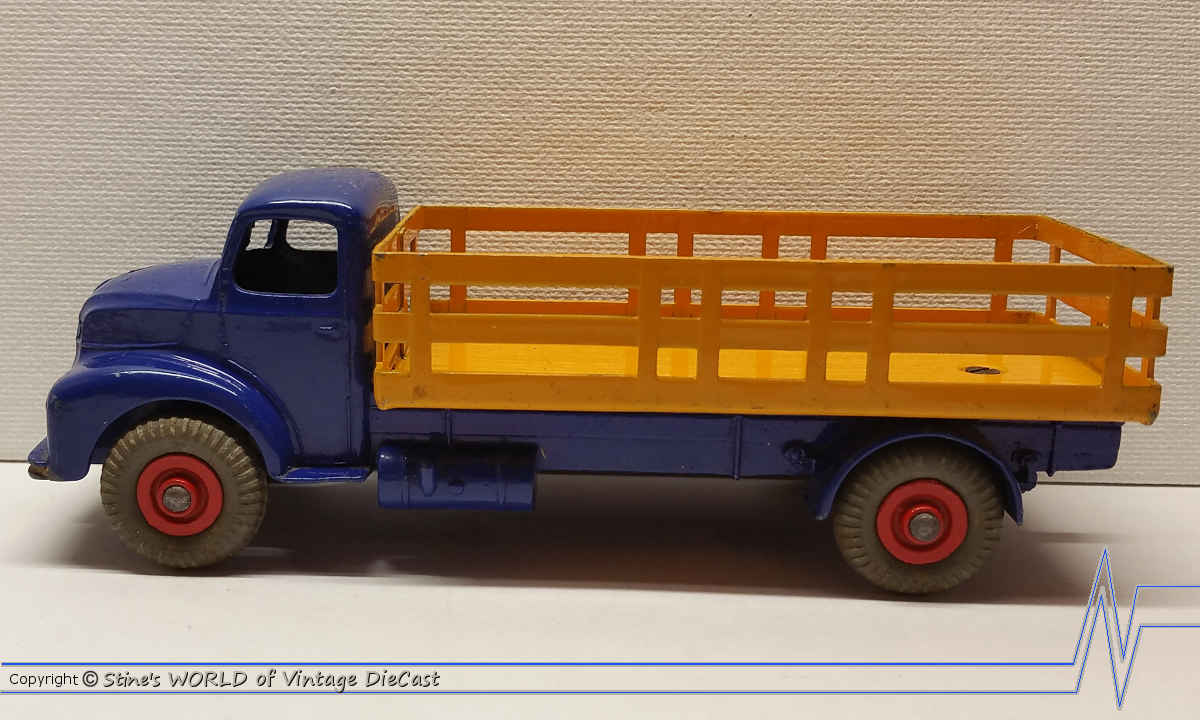 Dinky #931 - Violet Blue Cab & Chassis with Yellow Stake Bed & Red Hubs